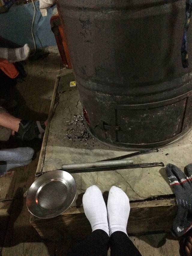 先说环境吧。超级无敌棒,如下图,有三个旅馆,旅馆四周,是四周哦,环绕着大大冰激凌,所以我们真的是在雪山的怀抱里入眠的,幸福大爆棚呀!!!!再来说说设施吧:①有wifi,但是你必须在太阳落山前到,,用的是太阳能。一路各种拍照的我们赶上了日落,所以wifi肯定是没有用上啦。②木有地方充电,除非你在太阳落山之前到。③可以跟老板买热水洗热水澡,一桶200尼,超级无敌热,这时候带的折叠脸盆就派上大大的用场啦。把热水分好几次到到自己带的脸盆里,洗了头发洗了澡,对处女座来说那开森无法言语。但是这是不良示范哦,shiba非常怕我高原反应,阻止了好多回。我洗完虽然没觉得不舒服,但是还是吃了片感冒药下去,以防万一。④电话没信号,但是老板的电话可以打,由于当晚我拨了几十次都拨不出去,放弃,所以也就忘记价格了。⑤最大,最大的幸福就是。有暖炉!!!!!!暖炉需要大家同意每人交钱才会给用,每人150尼。放一个类似于煤气灶一样的东西在桌子底下。大家围坐在桌子旁,气氛无敌好。let us party~