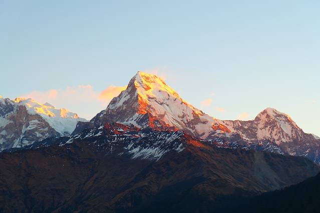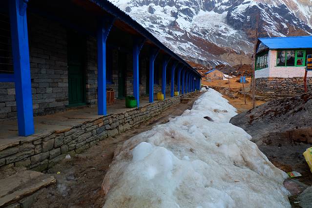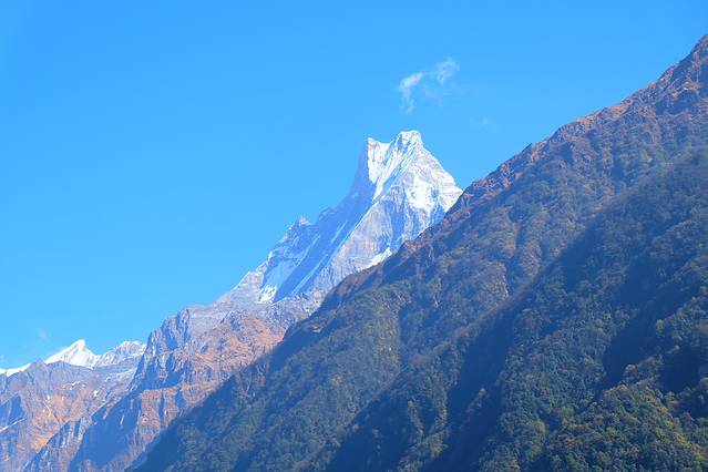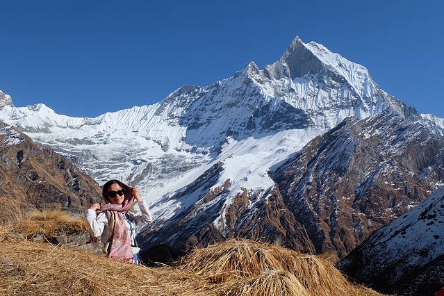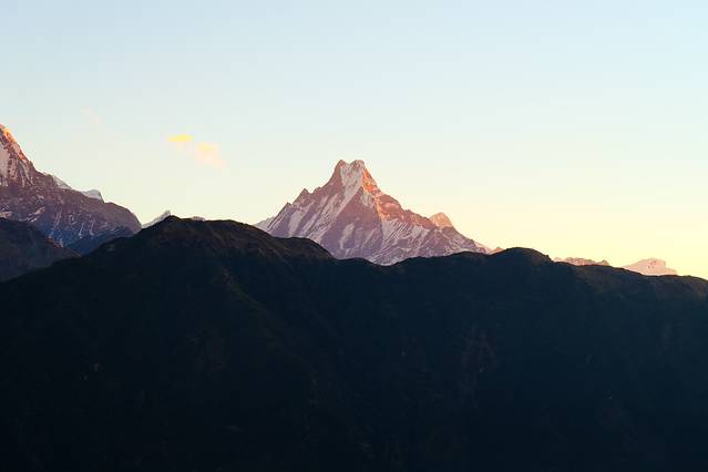 himalaya描述:①房间木有电②超级无敌潮湿③房间紧张,遇到的一群小伙伴差点没有房间住④木有暖炉⑤木有wifi⑥手机没有信号,我是每天都要打电话回家报平安的,所以用的旅馆老板的电话打了个电话回家,费用是一分钟150尼。himalaya是我一路上来唯一一天没有洗澡,没有洗头的地方,哎处女座的我简直无法忍受。第二天早早地就想离开了。⑦没有地方充电。⑧当然,如果你对喜马拉雅这个名称有独特的情感,倒是可以选择在此住上一晚⑨himalaya开始如果因为住宿紧张就有可能跟别人拼房了哦,shiba路上的时候已经先提前给我打过预防针了。然后在himalaya还搭讪了两个韩国小帅锅有木有,用烂烂的韩语跟他们说了我上个月去了韩国各种,交换了照片各种,他们还说在chomrong看到过我,对我有印象。反正在这样的地方,晚上确实木有啥活动,太早睡了怕半夜会醒,没电黑乎乎,那样非得惊死。再上一组大爱的 fishtail。感觉它也像格格的旗头,有木有
