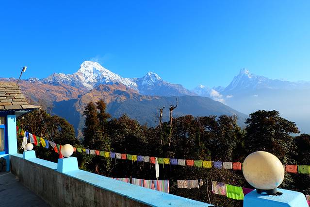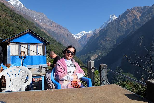 你以为今天的惊喜就仅限于此了么???NO,NO,NO,你错了。还记得么,昨天是15:00左右到的ghorepani的,所以到达旅馆的时候只能看到一片雾茫茫了。但是从布恩山上下来,我才发现,原来我住了个全雪山的山景房呀!!!!!一早伴着雪山吃早餐的那种感觉,幸福到爆炸啦!!!