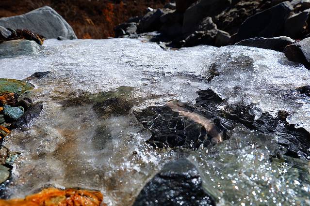 海拔上升,温度开始降低,作为南方妹子的我确实土了些,我想说,我没有看过小溪结冰