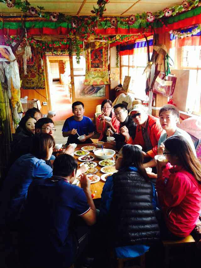 吃:早餐要提前跟飘飘客栈定哦,因为山里烧饭很麻烦的。他们家的面好吃,得到了我们大家的一致好评,饼和稀饭味道太淡,建议买和榨菜什么来配。中午就是无疑问的在休息站吃泡面或炒饭,但是因为爬山的关系,其实我也吃不太下去。大本营的牦牛奶,杠杠的,不喝一定会后悔的。