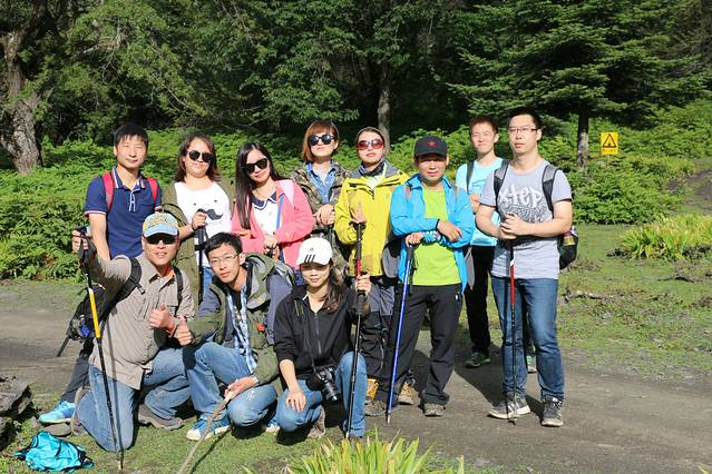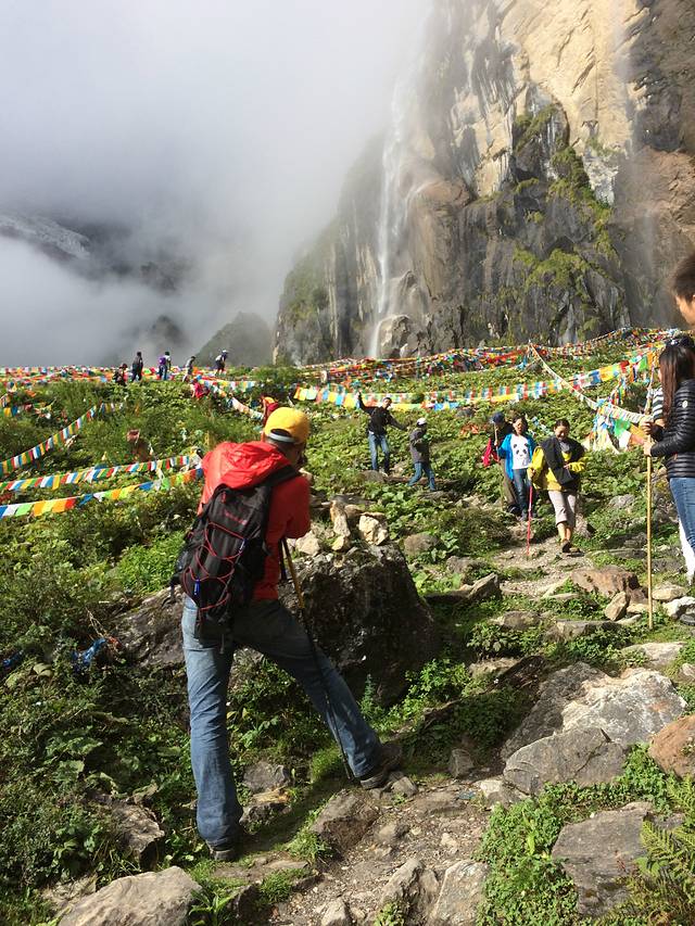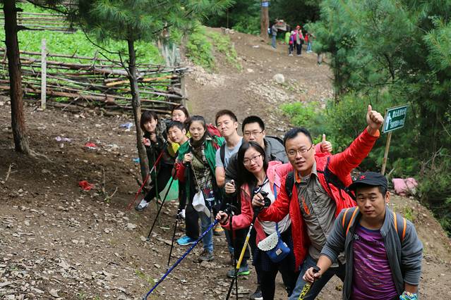 6、行程装备:登山鞋一双(超级无敌重要,普通布鞋绝对不行),双肩背包,女生可以加个斜肩小包包,(装手机用),雨衣(登山时候下雨穿雨衣比打伞靠谱),登山杖都吉会准备,冲锋衣就看个人了,我买的抓绒衣加件秋季的线衣外套,穿的秋季偏冬季的衣服,穿的裙子,带了好多冬天的丝袜去,冷了好多穿几条,热了好直接脱了方便。手电(有小的就带着吧,最后一天有用)。至于其他的内衣,防晒霜,面膜,各种我就不多说了。尽量带少点东西,部分会放在山下,山里三天基本就换里面的,外面的不换,不然会背得把你累死,没在开玩笑的。