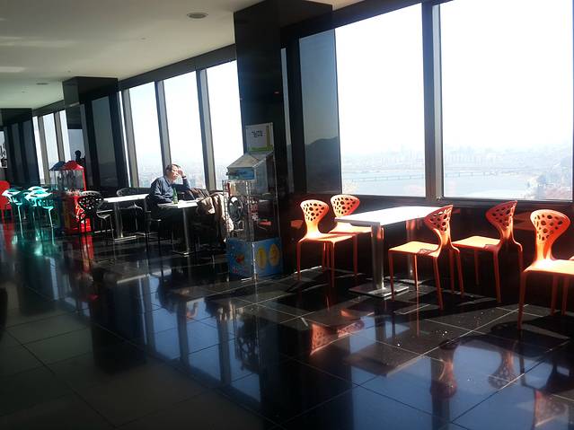 从地下一层坐电梯直接上去,沿途还可以欣赏电梯外的汉江风景~不过很快就到顶层了。。