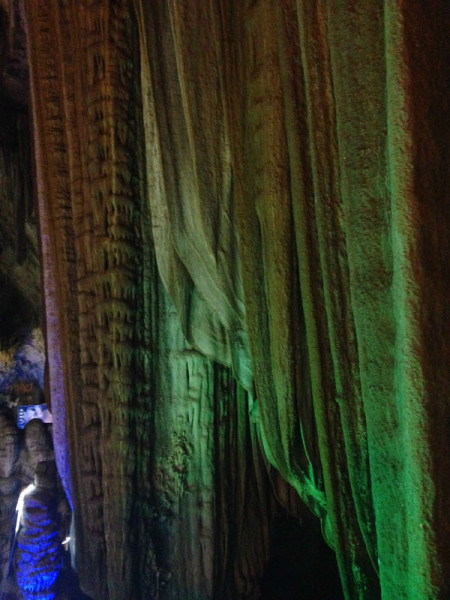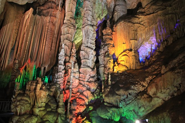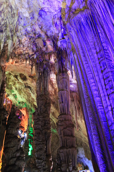 洞内到处都是这样的钟乳柱,有的高达几十米,直通溶洞的一层到四层