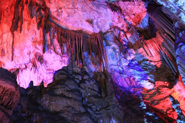 跟其他大多数溶洞一样,溶洞里都设计了景观LED灯,在灯光的衬托下,洞内呈现出魔幻的光影效果