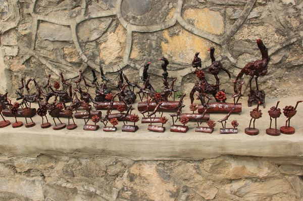 走过一条小道,两边是卖东西的当地人~这是根雕~