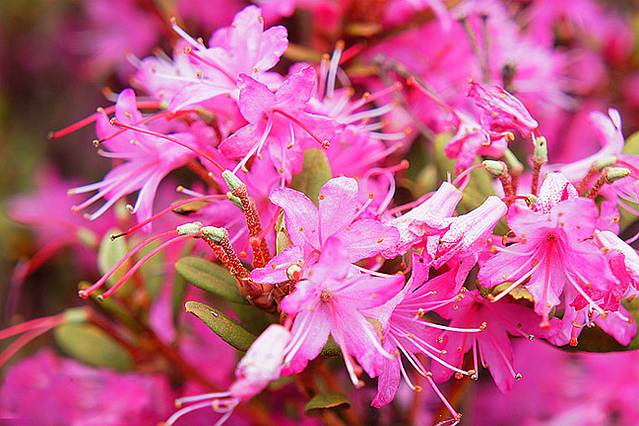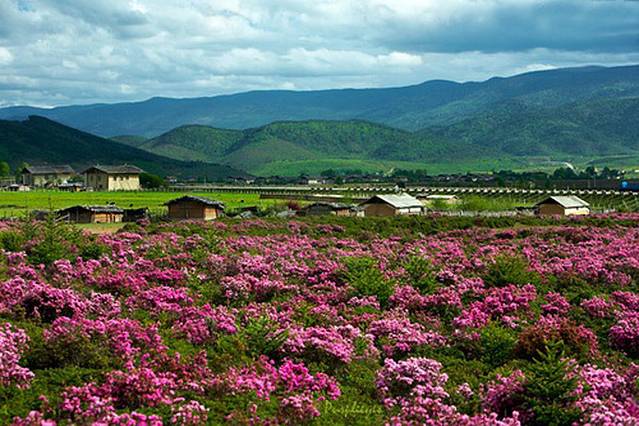 月,是欣赏杜鹃花海的好时节,从丽江往香格里拉,过了曲哇迪收费站就可免费看到最美丽的花海,绵延数里,一望无际。碧塔海的湖畔同样满是杜鹃,风吹过,花瓣落到湖面,甚是好看。因杜鹃微毒,碧塔海独有的碧塔重唇鱼吃过花瓣后中毒,浮出了水面,便形成了“杜鹃醉鱼”的奇观。