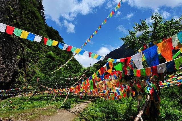 蓝天下的经幡象是在为我们转过神瀑的人祈福