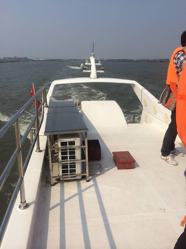 女生坐领导的小车,男生坐公司的商务车,9点半从上海火车站这里出发,路上略微有点堵,看来去吃蟹的人不少呵。11点左右到了快艇码头,要做船去莲花岛。