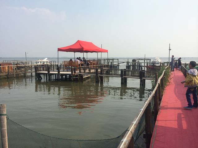 离开岛以后大家还不尽兴,又在旁边的一家水上木屋里继续吃。