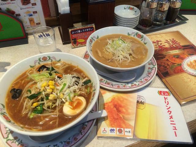 王将招牌拉面和蔬菜拉面,630和472日币,拉面是黄色的,很劲道,非常好吃,蔬菜铺满