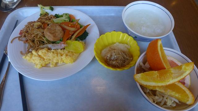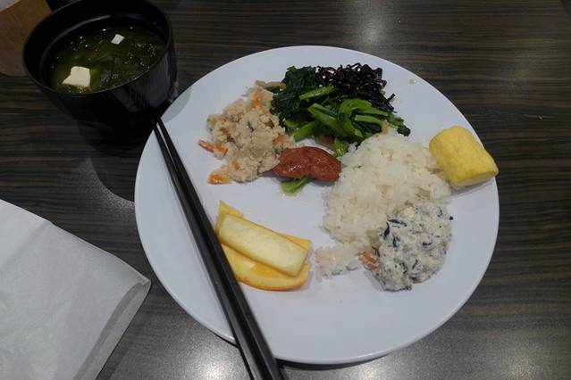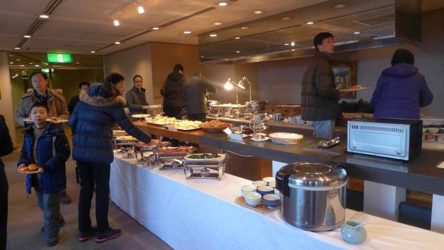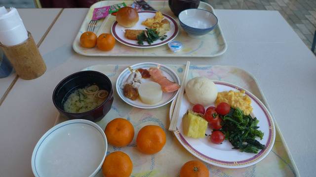 第二天酒店一楼6点半自助餐,大部分是日式的,各种凉拌菜,鸡蛋卷,有小部分西式,后来所有酒店早餐,都是冰牛奶,没有热的,让我们很吃惊,连泡麦圈都是用冰的,你可以让服务生加热,他们态度超好的