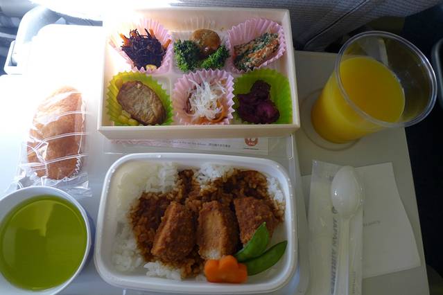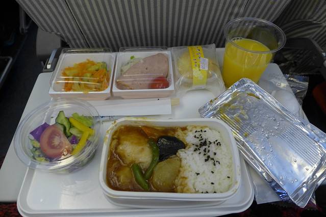 下午2点,JL876准时起飞,飞机餐,那个奶油鳕鱼饭和那个泡芙非常好吃,飞机上是空嫂,不是空姐。。。