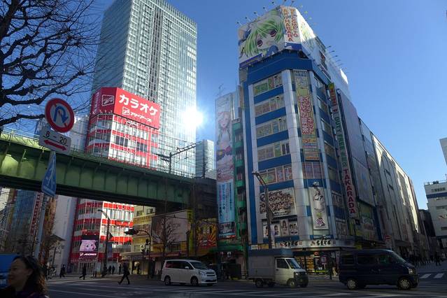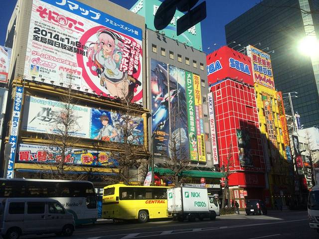 乘上车,8点出发,前往东京秋叶原,1小时左右路程。果然是动漫和电器天堂啊,看看大招牌,全是动漫,果然有很多人在排队等什么限量版的东西