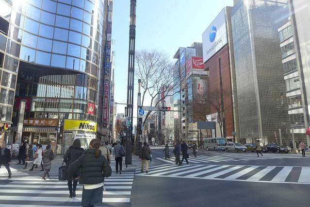12点集合出发去银座,约一小时,果然是繁华的银座,两旁都是高楼和大型百货,非常商业化