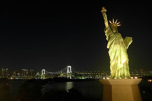 去看东京湾夜景,彩虹大桥、日本复制的自由女神像、东京塔,停留了3三小时