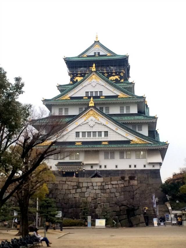 逛了一小时,下午2点出发去大阪,4点到达,大阪城公园,下大雨,进去看了下就出来了,整个公园到处都是樱花树,是赏樱的好地方,下次有机会来看