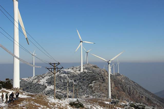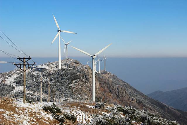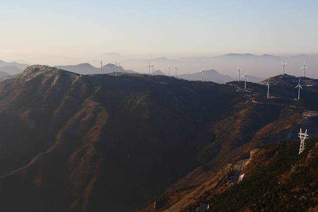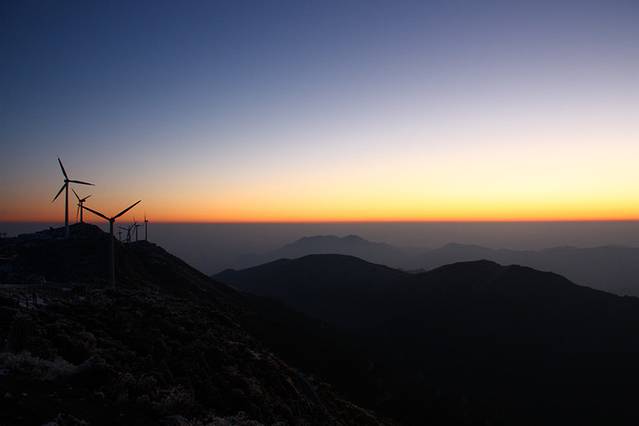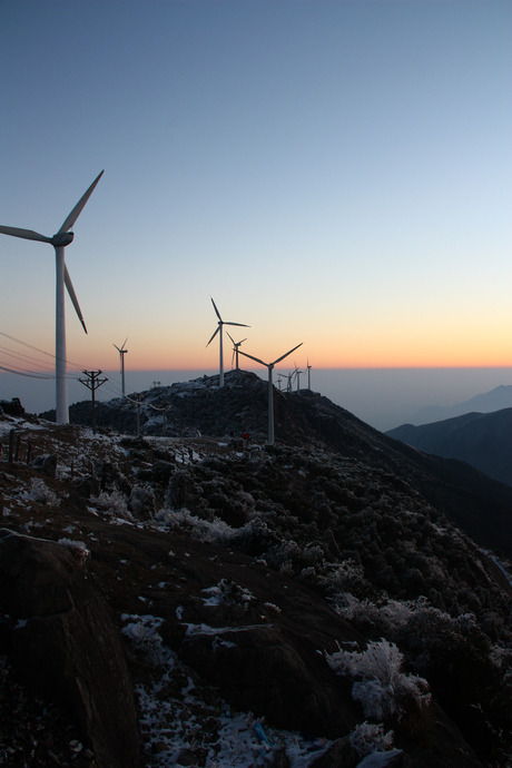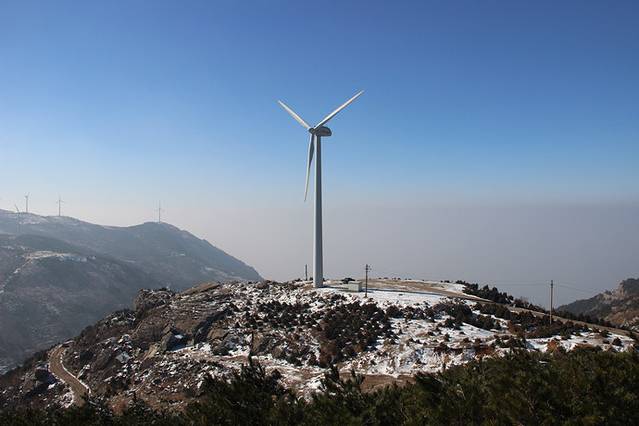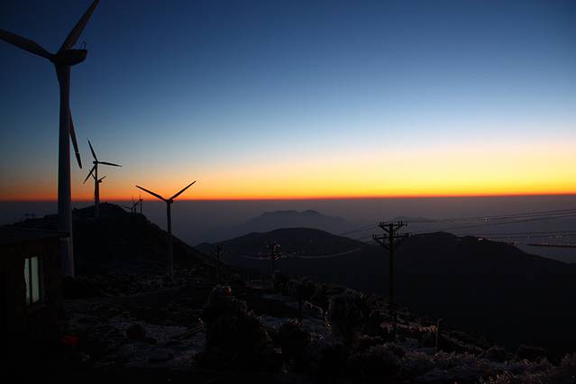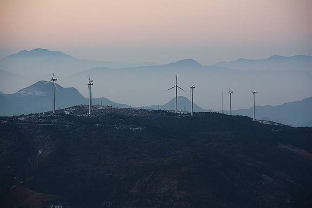 括苍山上建有全国第四大风力发电场,三十多台高低错落不断旋转的风车,与身后绚丽的自然景观交相辉映,构成了一道靓丽的风景。