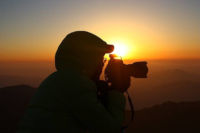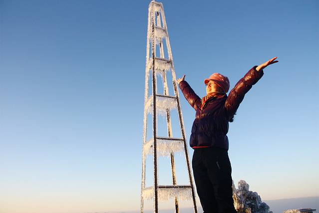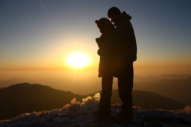 迎着冉冉升起的冬日阳光,在括苍山之巅演绎浪漫故事。