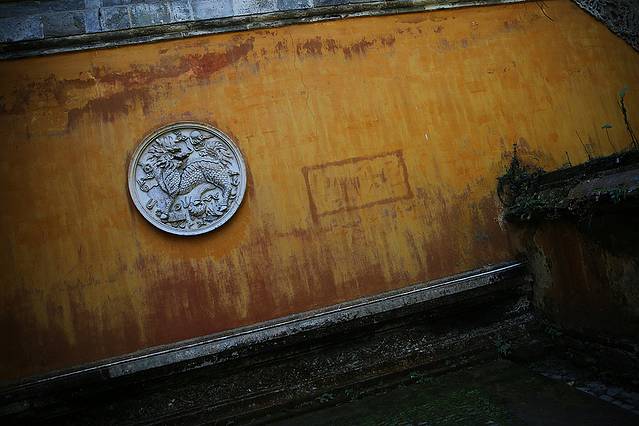 看着枝枝蔓蔓的树木和橙黄色的院墙交相呼应,是青山之间幽深的江南古刹?还是曲径通幽的古老园林?我陶醉了……
