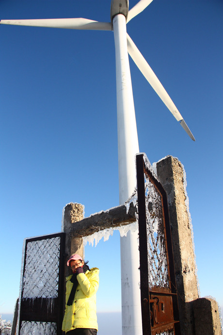 临别,在世纪曙光碑前留下难忘的记忆。括苍山,风车下的beautiful等待着您!