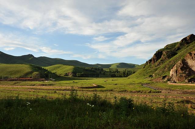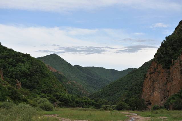沽源老掌沟和金莲山森林公园临近坝上第一峰冰山梁,最高在海拔900-1000米之间。她位于沽源县成东南侧,与赤诚县的北部接壤。从老掌沟向南可以抵达赤诚县黑龙山国家森林公园。连接两地的道路大部分在山谷之间,两头是柏油路,途中间约8公里是碎石土路,其间要漫过河溪。轿车会托底!最好旅行方式“徒步”。驾驶SUV没有问题。但很要驾车操作技术!这里是旅游休闲和摄影的好处去!途中又奇山奇峰、草甸牧草。在金莲山森林公园可食宿,夏季进入他要走泉水流淌着碎石路。小心驾车!老掌沟没有农家乐!