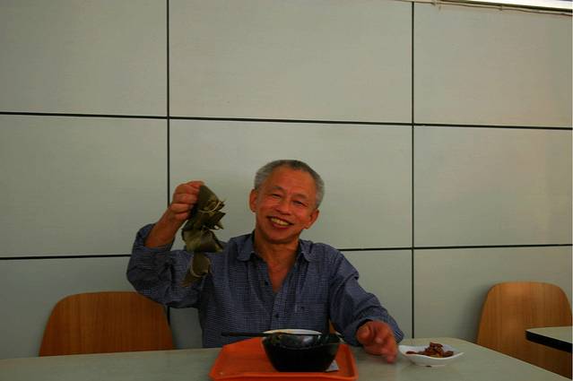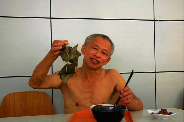坐在我们侧面的一位卖粽子的老大爷,看我用相机拍他的粽子,他立刻用四川话说,我拿上粽子你给我拍一张吧,随后还要穿上上衣让我在给他拍一张,呵呵~~很友好的老大爷,交流中得知他是广安人,在重庆卖粽子为生,很豁达乐观的一个人,祝愿他平安、健康。