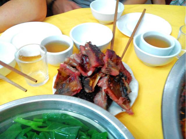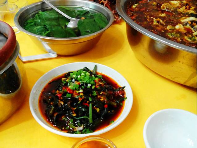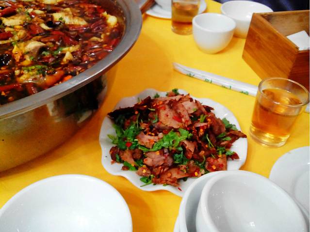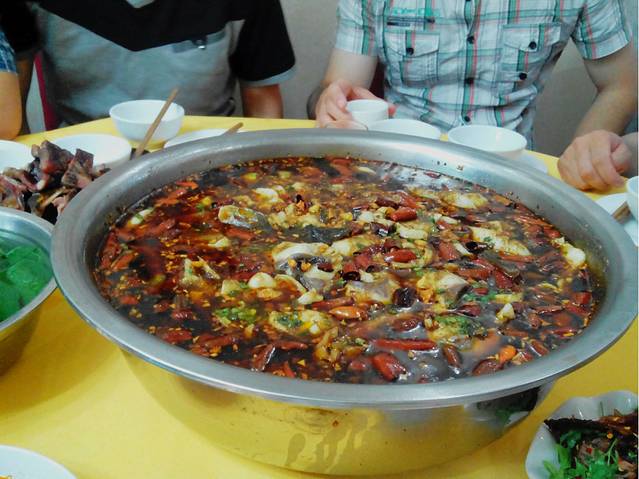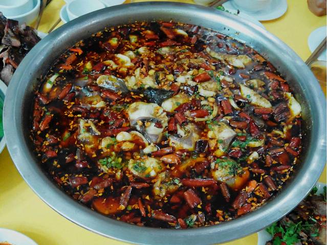 在重庆市区的最后一顿饭,同事的亲戚带我们去吃的烤鱼,麻辣和酸菜的,绝对的地道。。。。吃的同事们都是浑身冒汗光顾着吃啦,到最后才补拍一张。