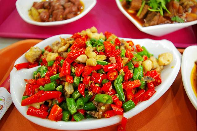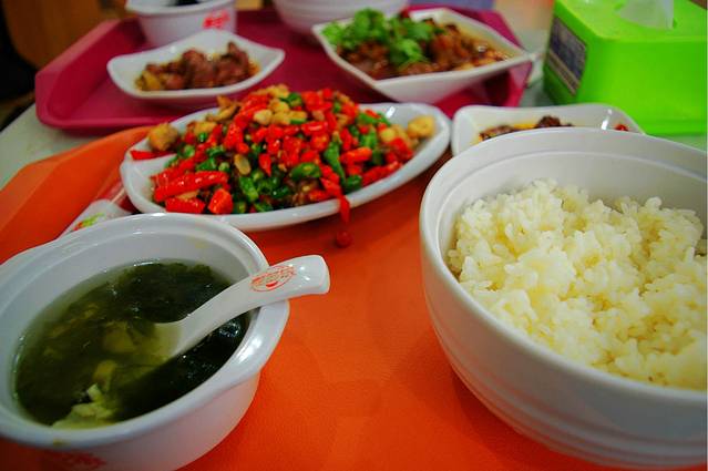 入住后,稍事休息后就出去吃饭了,重庆的确是很热,走在街上都是汗流浃背,就在附近的一家“麦多乐快餐”吃的套饭,到了重庆当然要吃麻辣的啦,我要了份双椒鸡丁,配菜有鸭血、紫菜汤、米饭、15元一份,还算是划算,味道当然是不错,麻辣....