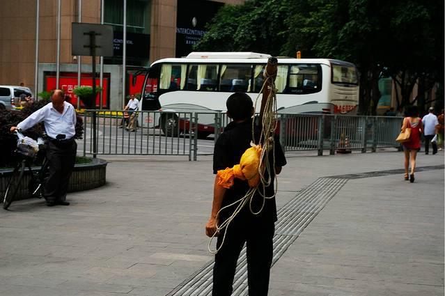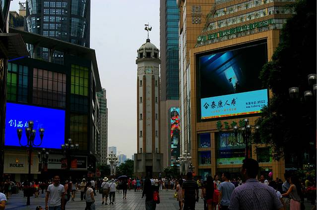 从洪崖洞到解放碑商业步行街不远,最具特色的就是“人民解放纪念碑”了,这里商场云集,其实里面卖的都是全国一样的商品,没有进去浪费时间,就在外面的街道转转,个人感觉现在中国的商业步行街都差不多一个模式,没有什么新意,在街上不时还能看见重庆独有的“棒棒”,这才觉得应该是重庆。说实话我来的这两天时间,看到的不是很多,难道是没找对地方还是现在随着科技的发展“棒棒”的生存空间在逐步减少。