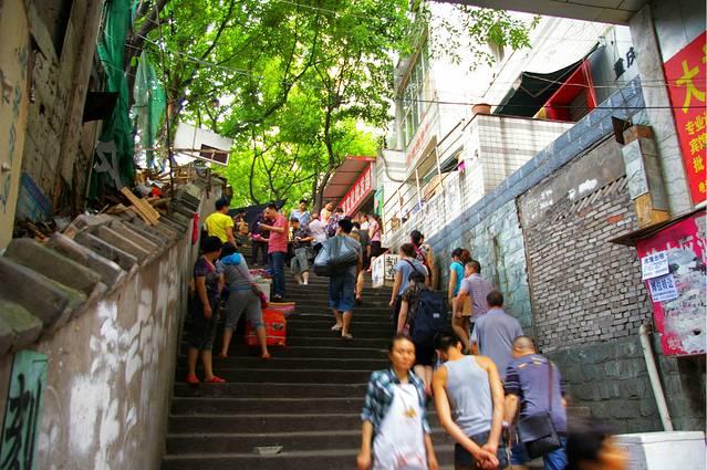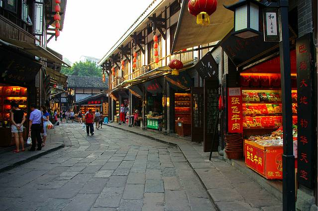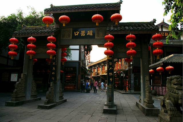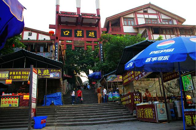 坐轻轨在磁器口站下,大约步行300米就能到达步行街。
