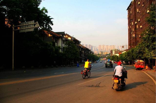 磁器口商业街区只是磁器口精华部分,小巷子里还住着很多当地人,看着他们安逸、悠闲的生活方式很是惬意,没有汽车、摩托,只是步行的方式,回归自然。磁器口特色小吃众多,陈麻花、糍粑、等等等等,都能让你垂涎欲滴,路过一家现做糍粑的店铺,两位工人正用木锤敲打半成品的糍粑、卖酸辣粉的商家用现磨的红薯粉放在漏斗中高高举起流出细丝状,吸引游客的注意,我当然也是被吸引进去,8元一份特色酸辣粉,味道当然是很地道的川味,粉很柔滑,口感很好,值得一吃。