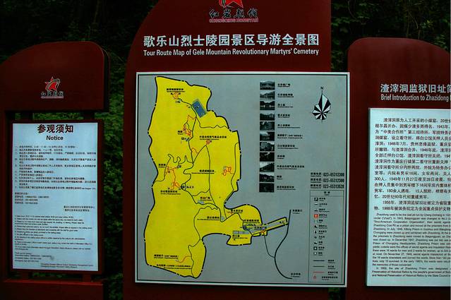 午饭过后都下午两点多了,我们计划直接去白公馆、渣滓洞,还是坐轻轨,到了烈士墓站,出来后我们包了一个车,一百五十元负责把我们拉到景区门口,然后等我们参观结束后直接拉我们去磁器口,说实话还是有很远的路程的,都是上坡路,如果是个人来的话,可以坐公交或坐小面的,都是几元钱的票价,因为我们人多图省事,就包车方便点。