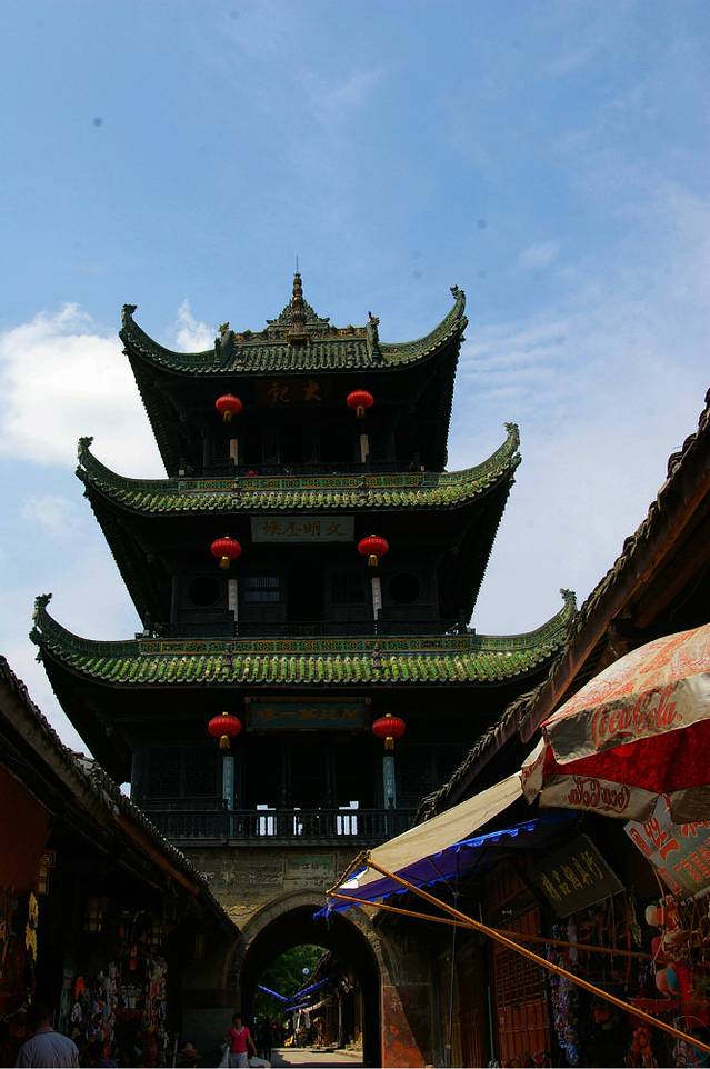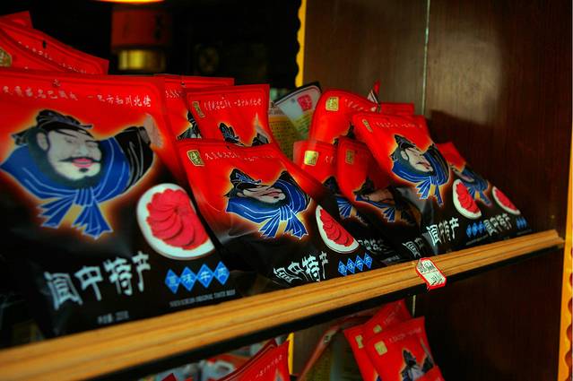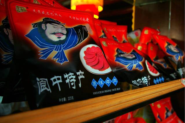 回程的路途大家都是一身的疲惫,都在呼呼大睡,只有司机要集中精力开车,保证全车人员的安全,一路的高速,到达阆中是中午一点,大家提议去阆中古城吃中饭,顺便去买点阆中牛肉,导航带领我们很快就到阆中古城的停车场,在附近一个餐馆吃饭,这顿饭是这次旅行吃的最窝火的一顿了,吃完往出走才看见,“此店转让”,老板本来就不打算做了,可想而知我们的饭菜质量了,要了一盘牛肉,很小的一个盘子,铺了一层,一行九人,人均也就一片,只要是肉菜,盘子都是很小的,大家基本上都是一两筷子就没了,哎......好在是头儿让在这里吃的,大家都没有发表意见,勉强吃了点,我们就在古城里面转转,由于中午的阳光很强烈,晒的人都是汗流浃背的,中午的古镇人也不是很多,顺着街道走到“华光楼”算是真正走到古城里面了,老大确说由于时间的关系,加之阳光强烈,大家买点牛肉就打道回府吧,啊..........瞬间大家没有说话,不过我倒无所谓,在2006年的时候来过这里的,里面的精华景区都是去过的,比较著名的就是古城里面有古代科举考试的考场,类似于现在的高考,每人一个小房子,一个直通道,监考的老师就可以来回巡视,很特别的。就在光华楼附近的商铺买了牛肉,这里的牛肉也不便宜,腱子肉和牛筋都是65元一斤,里脊肉的话卖到90元一斤,我买了些腱子肉和牛筋,真空包装,能储存三个月时间,在我小的时候父亲就带回来过阆中牛肉,这里的牛肉以卤牛肉和酱牛肉为主,在川北地区还是很有名气的。