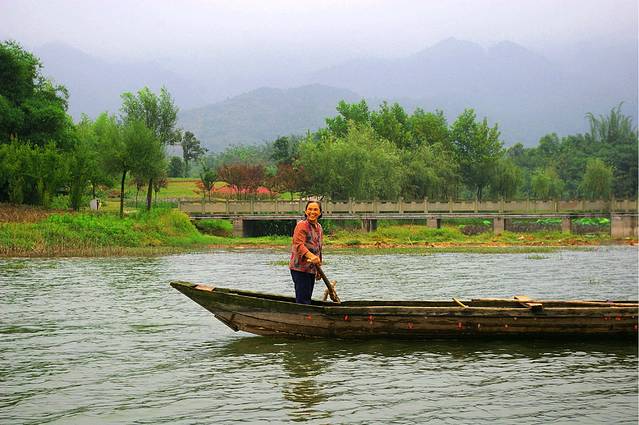单人单桨划船的老太太,跟我们的船司机在打招呼。