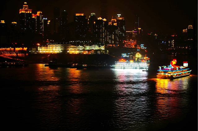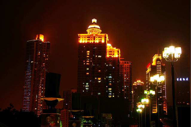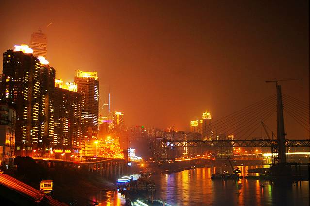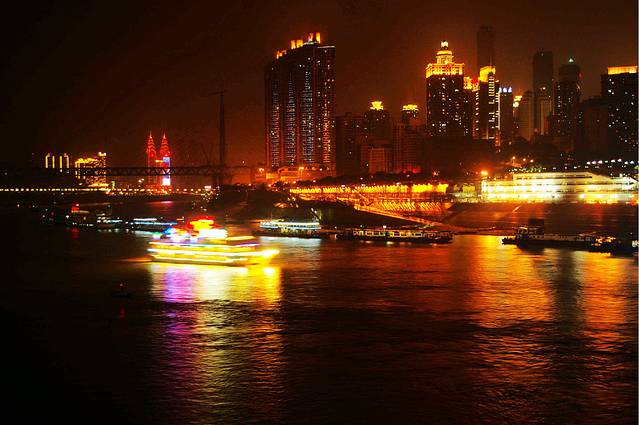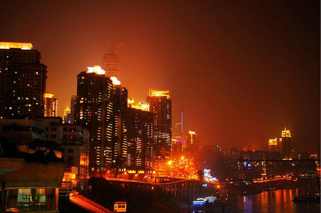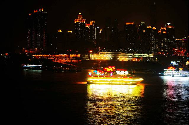 计划的是大家去朝天门码头船上吃烧烤的,同事的亲戚这时打电话非要让我们去吃火锅,同事虞哥想去家乐福超市买做面包用的黄油,要我陪着一起去,他们则在朝天门广场等我们,在超市里接到电话同事的亲戚正往朝天门码头赶,带我们去看看南岸的夜景,我一听这消息,顿时兴奋,可惜的是从超市出来已经开始下雨了,到达朝天门广场,坐上车外面的雨已经很大了,饶了一大圈才到对面的南岸,说真的,重庆的夜景只能是用震撼两个字来形容,山城的特点很多高层建筑都是在山顶上,层次感很强,非常的漂亮,但是最悲催的是下着大雨,找了相对好停车的地方,下车冒着大雨,拍了仅有的三张照片,遗憾、遗憾啊。最美的夜景没有能够拍到,只能记在心里了。
