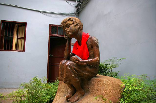 其实白公馆、渣滓洞都是在歌乐山上,这里统称为歌乐山风景区,景区在几年前都已经是免票同行了,我们到这里已经下午四点,景区是五点闭馆,想参观完是有些困难的,在景区广场上有野导游,说好带车和讲解,100元,从景区广场到白公馆还有一段路程,开车到达后,这位中年妇女带着重庆椒盐口味的普通话给我们讲述着这里以前发生的故事,当一面黄墙在我们眼前出现时,我心里还是禁不住震了下,这个场景在影视剧里出现了很多很多,现在真真切切的站在这里,心里还是有种说不出的感觉,大门右侧就是小萝卜头的塑像,依次参观了地牢、审讯室......,想想当年的爱国志士都在这里饱受磨难,才换来现在幸福安宁的生活,真的是不易。参观完白公馆就前往小萝卜头和杨虎城被害处,然后就去往渣滓洞,可惜的是渣滓洞核心部分已经闭馆,我们只能在外围看看,听听这位野导给我们讲述讲述,这里最多的时候关押过三百多人,很小的地方,睡觉翻身都很困难,里面的刑房和关押室都没有机会看见,很遗憾啊。留点遗憾吧,为下次来重庆找一个更好的理由,呵呵~~~