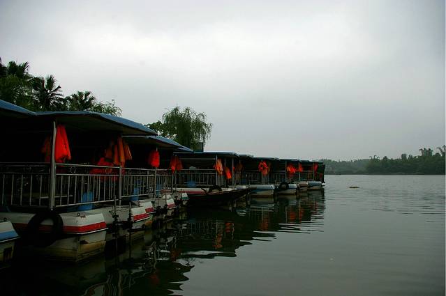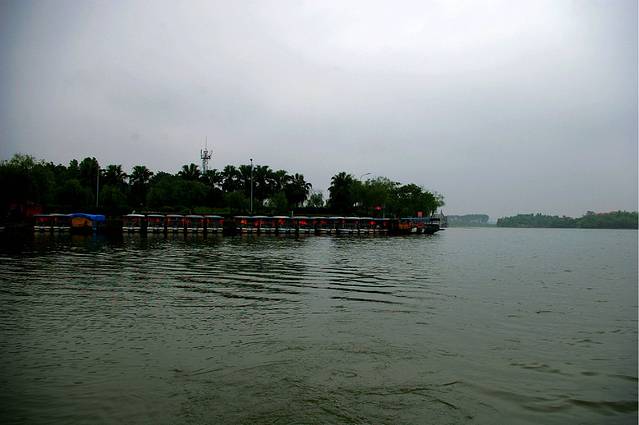 由于同事还有个亲戚在双桥区,我们先去了双桥经开区,安排我们入住新湖天酒店,吃完早餐后去这里的一个龙水湖景区转转,一路上还是大雨,下高速后天气就变成阴天了,阴天好比下雨好吧,龙水湖的游船都是改造成电瓶驱动了,速度较慢,没有声音,不过很环保,支持一个,问了下开船的女师傅,龙水湖其实就是一个人工湖,这里的淡水水质很好,双桥这里的居民用水都是来自这里,微微的风吹着,吹走了我们一身的疲惫,偶尔湖面有小木船划过,都是单人单桨在操作,湖面的野鸭子悠闲的在游着,很有一副诗情画意的景象,呵呵~~~