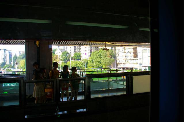 吃完饭后,同事们都嫌热,回酒店休息,等待同事亲戚下午接待我们吃饭,我看看时间还早,时间有限不能在酒店消耗时光,毅然决定独自一人去久仰的磁器口转转,拿出手机百度地图搜索,从观音桥到磁器口坐轻轨乘3号线到“两路口”转1号线到“磁器口”,全程4元,真的是很便宜而且快。重庆的轻轨设计有时候是在地下的,有些路段是在空中,很有特点。大约40分钟后到达磁器口,不行约10分钟就到磁器口古镇商业街区了。