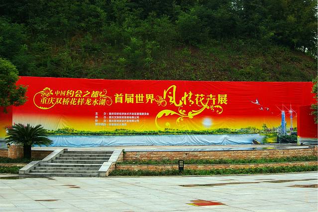 船开到湖的另一岸,我们下船徒步,欣赏景区里的花卉,走在水泥小道上,两边都是开满五颜六色叫不出名字的花儿,很是漂亮,相机的快门不停在啪-啪-啪,在景区的小广场上,看见一个宣传牌,前段时间还举行过龙水湖相亲大会,哈哈~~没有运气啊,不然还能来看看热闹。