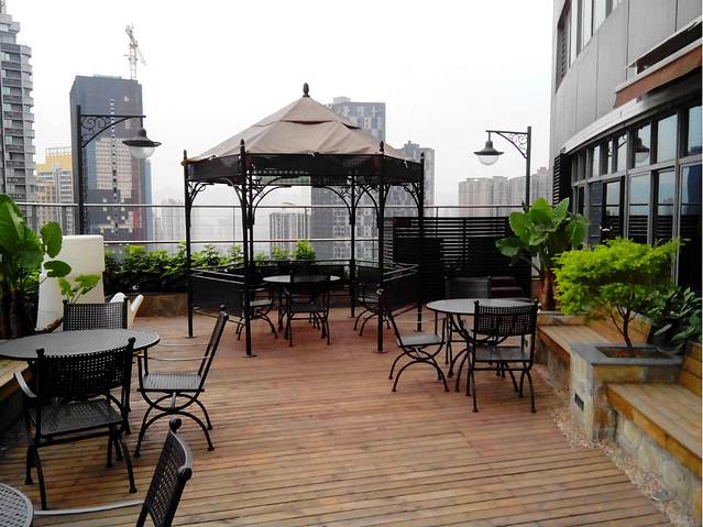 单位同事的亲戚在重庆,提前在江北区观音桥商圈附近预订了酒店,在百度上搜了下,重庆观音桥商圈是西南地区最知名的商圈,难怪住宿都不便宜,朗悦酒店,挂牌价880标准间,我们出的是协议价480元,不过酒店环境那是相当的棒,健身房、现磨咖啡饮料、茶座休息上网(苹果台式机)都是免费。