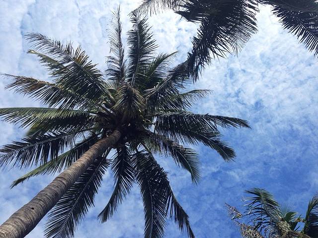 看到这高大的椰子树了吗,看到这碧蓝的天空了吗?如果也能让你们感受到这里的空气,那就更加好了。