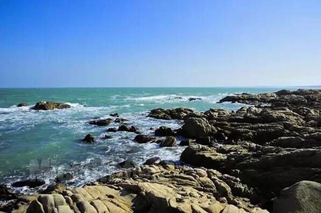 附近还有这样一个水天相连的棋子湾海滩,那白金色的沙滩,那碧蓝的海水,那被海水拍打的个性的礁石,没有一处不令我惊叹的。