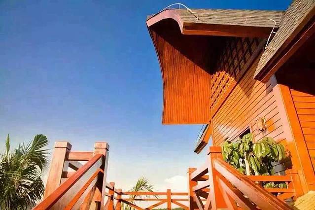 到达住宿的会所··看到这样的木屋酒店会所,是不是感觉别有一番风味。虽然不比三亚的热闹,但是远离那些喧嚣,这样的宁静更让我觉得舒服。