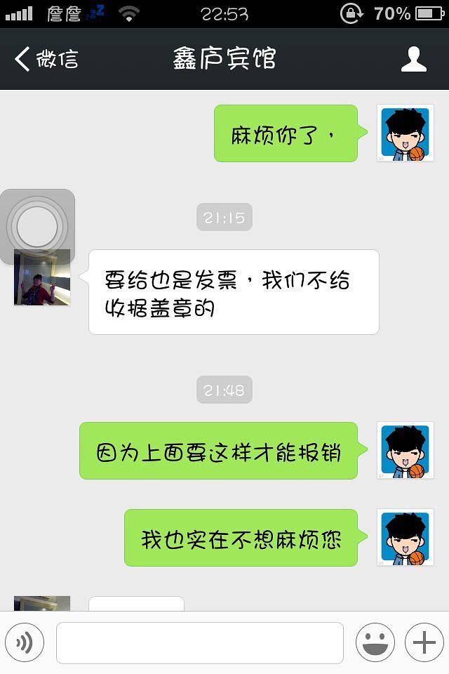 出发前在去哪定了房间,本来可以安安心心的去玩的,谁知道出发前两天庐山周阿姨家庭宾馆的告诉我没有房间了,打电话来告诉我,可以跟她朋友那里住,但是没有这个价钱了,呵呵,这就是我们被坑的开始,我真的五一房间紧张所以提前10天定了房间,结果两天前告诉我没有房子,说实话那个时候我真的急疯了,因为找不到房间,打电话订了一家叫鑫庐宾馆的,三人间要我240,因为我们是四个人每个人60,好!老板我理解你,到这个宾馆唯一一个好的是老板娘去接我们,接下来确实一个噩梦的开始,放了东西去玩了,回来找老板娘要吹风机,告诉我吹风机坏了,呵呵!一个宾馆那么大没有吹风机,好了,我理解!最不爽的是爬了一天山,好不容易回来洗澡,公共浴室的水5秒冷水1秒热水,哈哈,我朋友站在外面骂了一个晚上,好了我忍,第二天早上起来准备出门的时候看到五个人也要住我们这家,不小心听到老板说380一间,靠!杀猪呢?真的赚钱不是这么赚的,我朋友告诉其中一个人不要住了,但是他们还是住了,只能说祝你们旅途愉快好嘛,还有,回来的时候因为去哪网需要发票,宾馆居然这样回我,大家看着办咯,看这种地方你们还要去坑钱吗?
