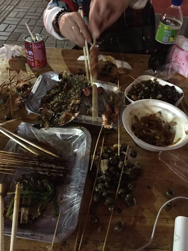 找到酒店,最好的一个酒店,哎又忘记拍照了,门口有夜宵摊我们在门口的夜宵摊吃了一顿,哎,不要太爽呀,好吃好吃,