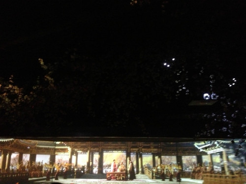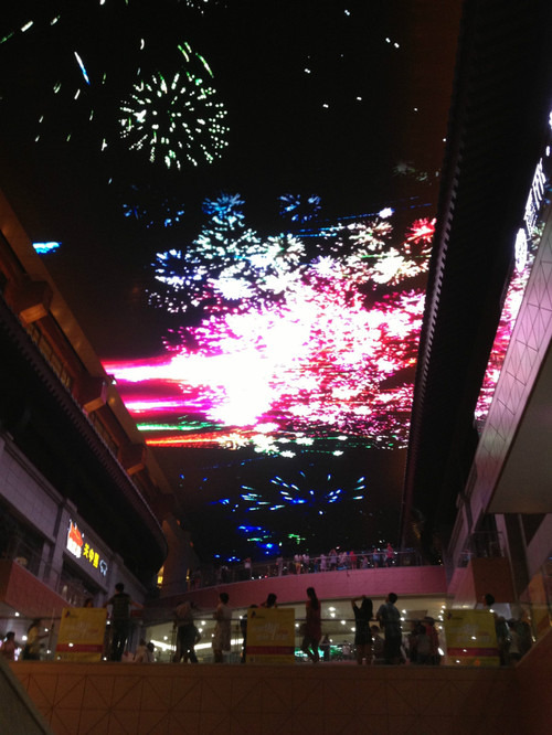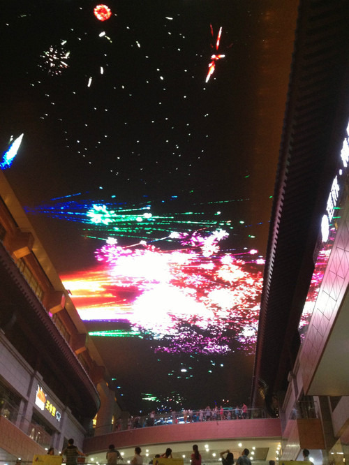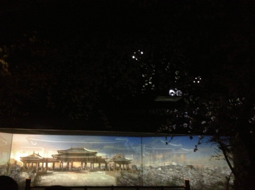 等了好久,终于进场了,里面每一层都会播放不同的章节,所以我们必须在结束后以最快的速度跑去上一层以找到一个比较好的观看位置。
