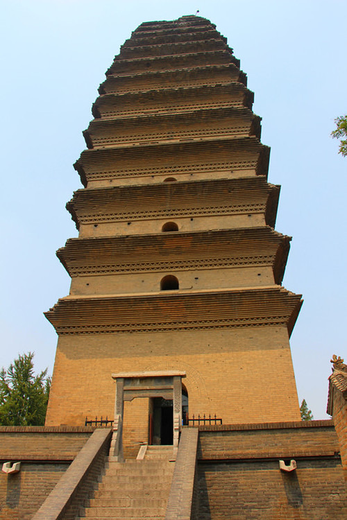 小雁塔建于唐代景龙年间。塔原有15层,现存13层,高43.4米。