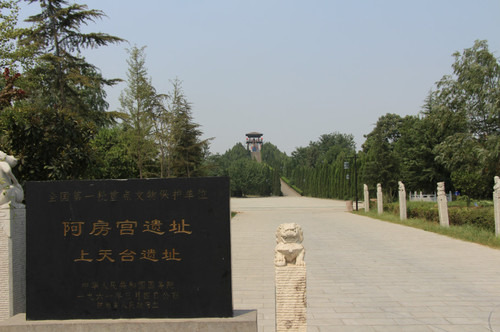地图上的阿房宫范围好大啊!虽然知道阿房宫覆压三百余里,隔离天日。骊山北构而西折,直走咸阳。不过不是已经被烧了吗?估计只是小部分重建用来做景区吧!问题是我们走了很远也找不到那个主要的景区,反而误打误撞走进一家养生馆,而里面只有这个天台遗址。