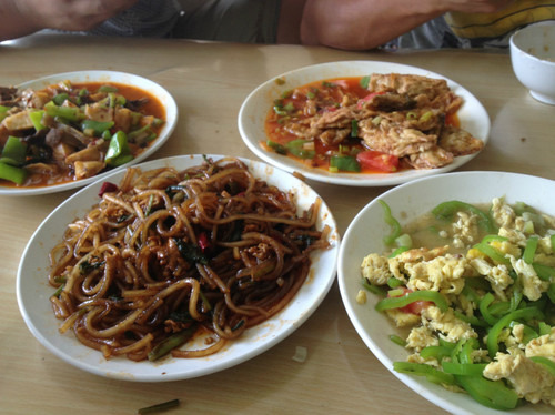 也许肚子饿了,也到了午饭的时候,我们就在小雁塔附近找了家人气很旺的餐馆,进去的时候还要跟别人拼桌。
